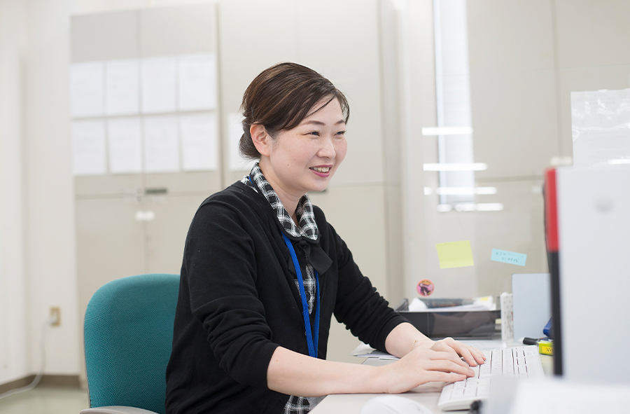 安行営業所の総務と経理を兼任し、総務の仕事は給与計算、保険手続きなど、経理の仕事はギフト伝票の仕分け作業など、その他、来客や電話応対、オフィスの備品管理など、事務全般を幅広く担当しています。